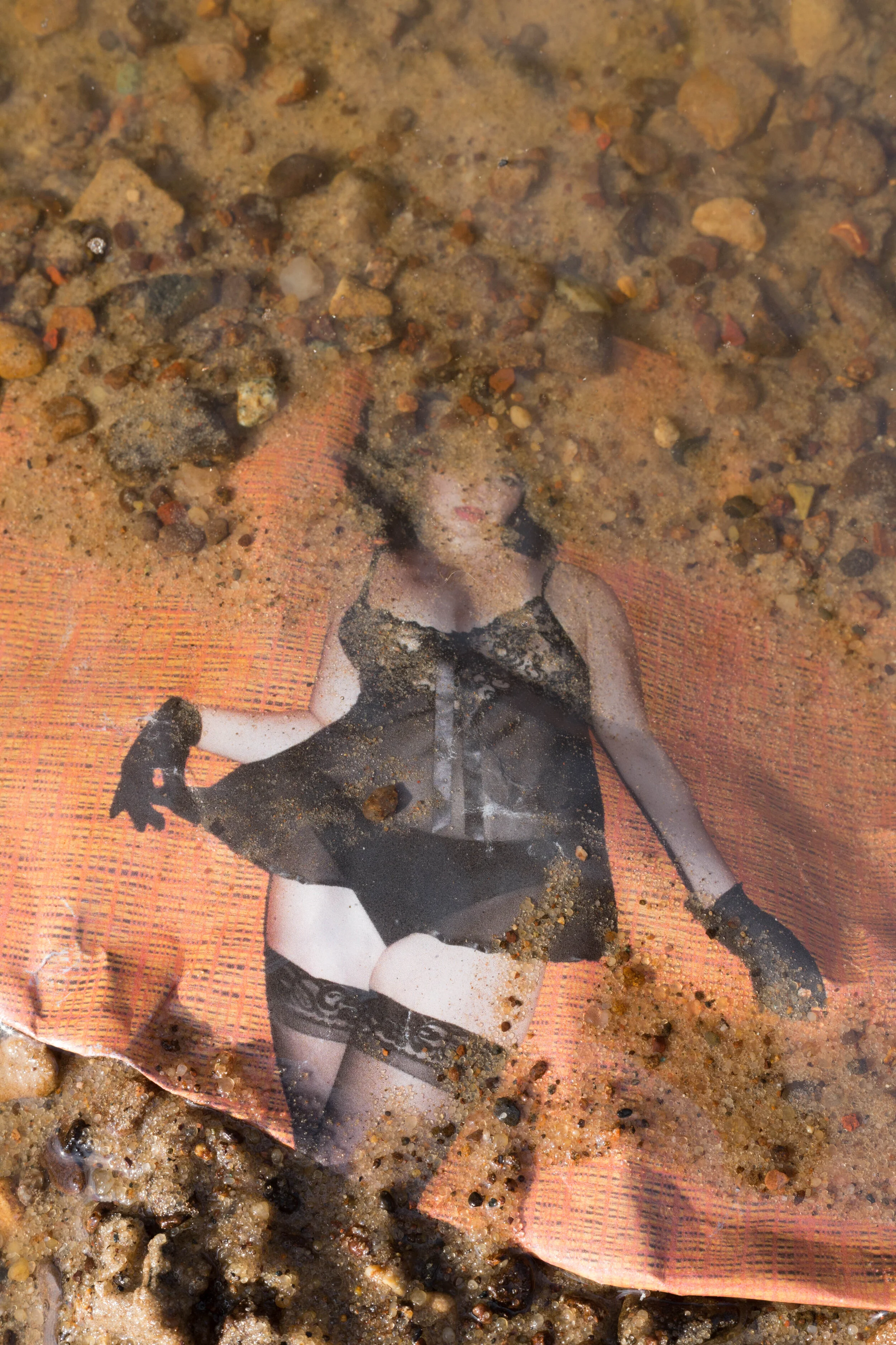 While quarantined in Wisconsin and exploring land there, I grew this idea further. I took my magazine tears into nature. I feel my most beautiful while being underwater when the sun glistens on the top of the water, I wanted these ladies to feel the same freedom. In the water I watched my hard work get torn apart by the river current and sink to the bottom. I thought the process was thrilling, watching the delicate sun gaze upon this paper. The series feel serene and yet like some misfortune happened and these images blew away, landing here. You ask yourself the same question I asked myself when I stumbled upon that lonesome magazine piece in California, “what are you doing here?” Like a fragment from a sunken ship, the angel in the centerfold arrives in her natural beauty.